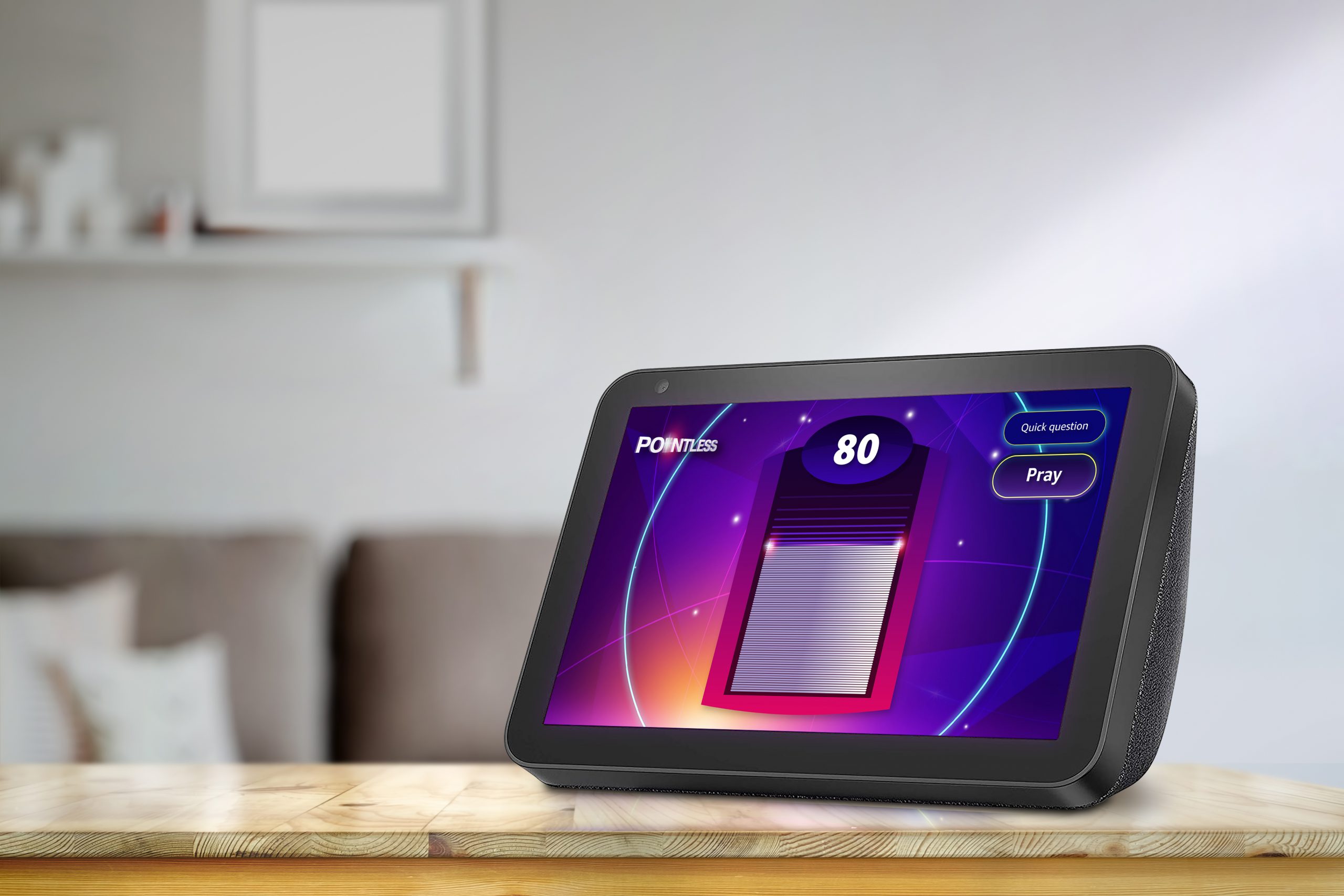 Pointless is the popular BBC gameshow quiz in which contestants try to score as few points as possible in general knowledge questions to come up with the answers no-one else can think of. Endemol Shine UK asked Vocala to adapt the game to give their audience the option to play on the Amazon Echo Show and Fire TV devices. My role was to enhance and adapt the brand and show graphics for the different devices.